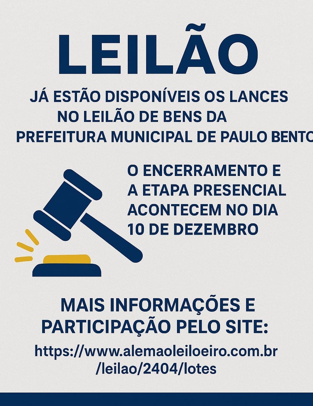 Já estão disponíveis os lances no leilão de bens da Prefeitura Municipal de Paulo Bento.